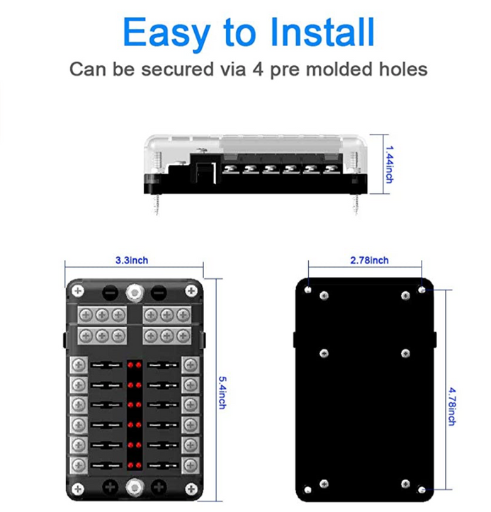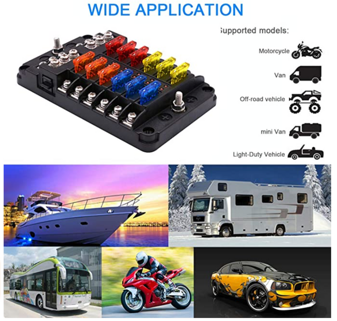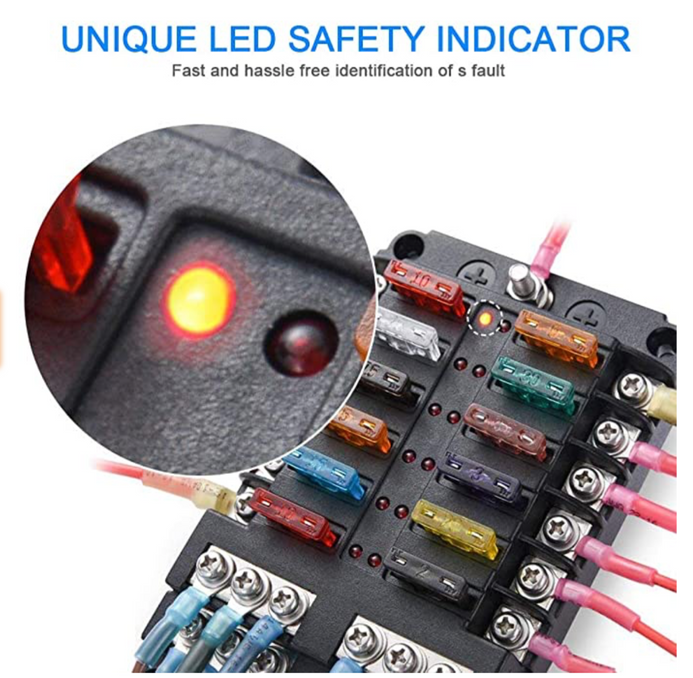 YJ-FB-12-N 12-Way Fuse Box Block Holder with LED Indicator Waterproof