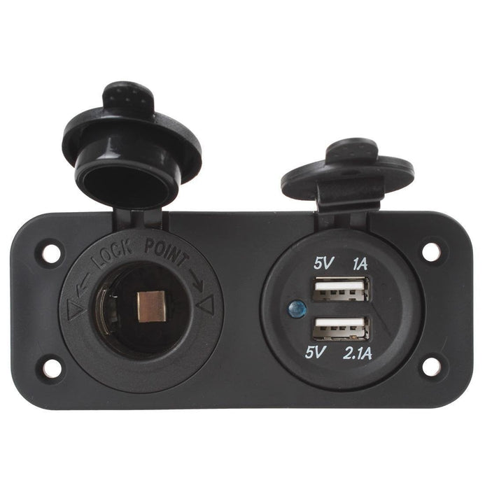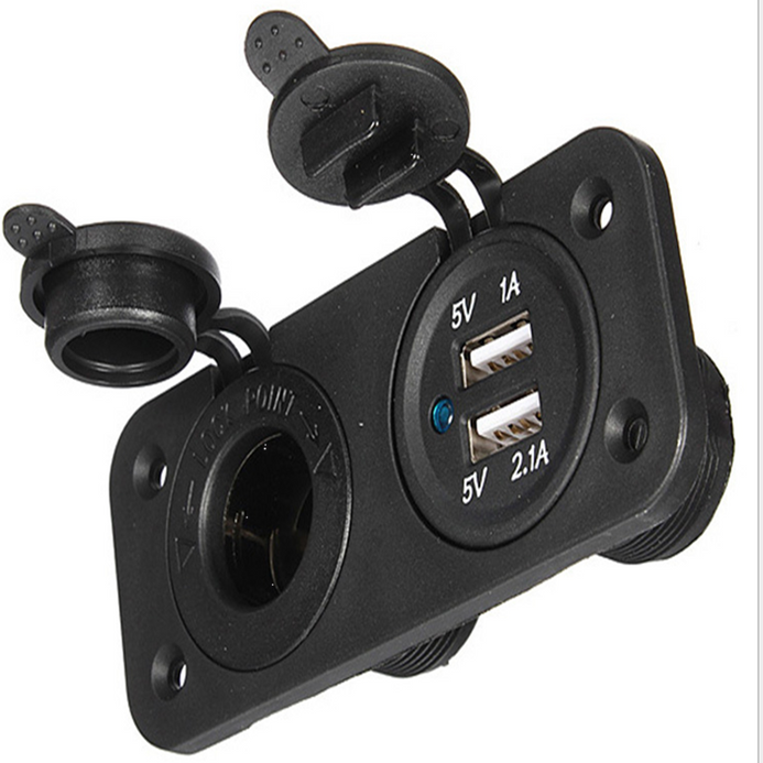 DS5-1011/2013 DC 12V 24V Cigarette Socket + Dual USB with Two Hole Panel