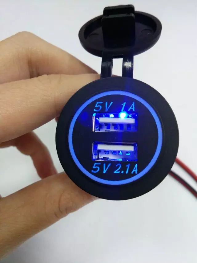 - DS2015 Dual USB Car Charger Socket Waterproof Power Outlet 12V/24V 1.0A & 2.1A with Blue LED Light