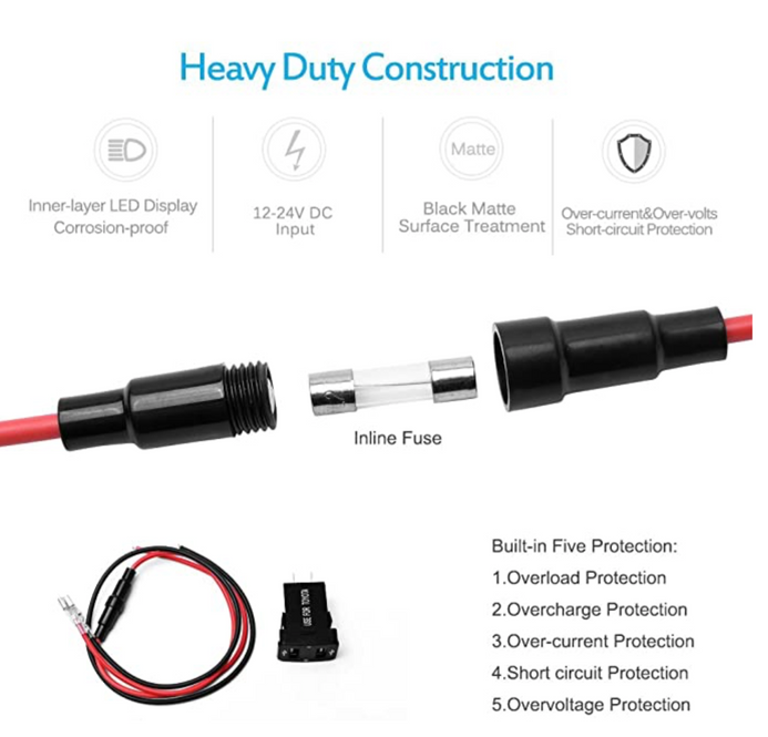 Built in intelligent voltage monitor with LED digital display, shows you the real-time accurate voltage status of your vehicle, more secure for driving