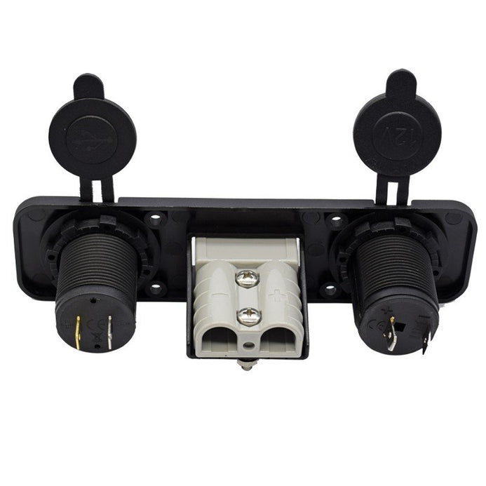 - YJ-AD04 50A Anderson Plug Panel Flush Surface Mount with Cigarette Lighter Socket & Dual USB Charger for Caravan Camper Boat Truck SB50