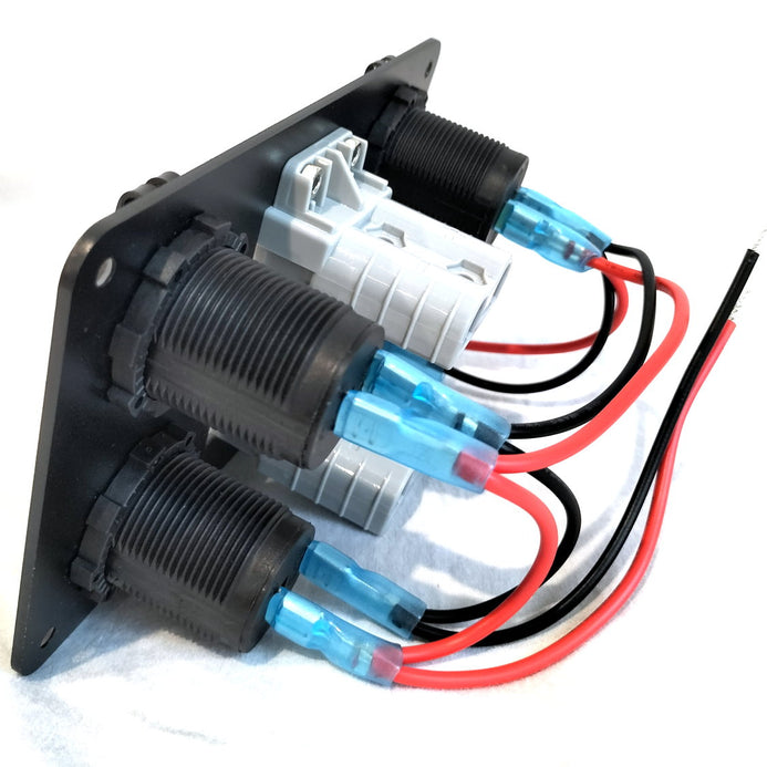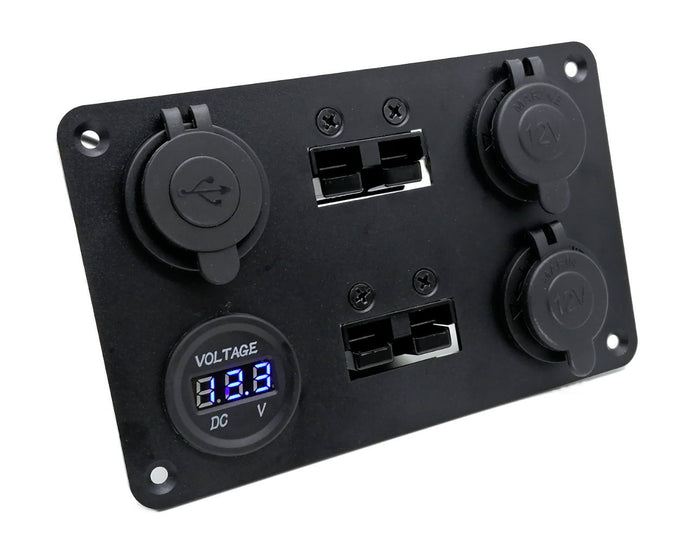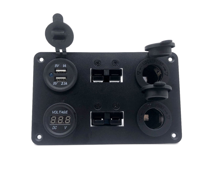 YJ-ADS-03 12V/24V Panel Flush Surface Mount, Dual USB Charger Port, Double Anderson Plug, Digital Voltmeter, Double Cigarette Lighter Socket