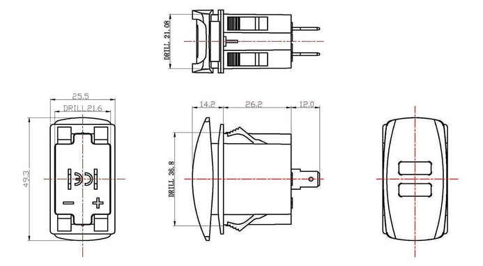 - YJ-UCC-T004 3.1A DC 5V 12-24V Rocker Style Car USB Charger - with Blue LED Light Dual USB Power Socket