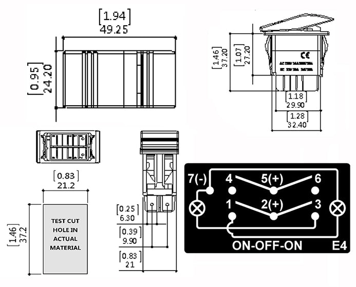 Switch cut-out hole size: 37.2mm  x 21.2mm
