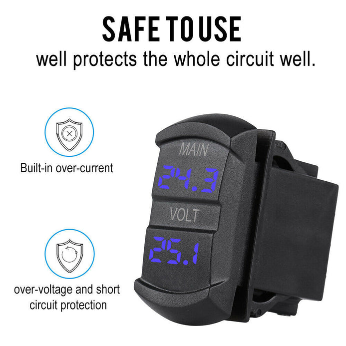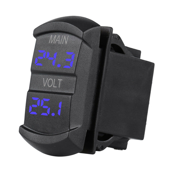 - Dual voltmeter, real time monitoring 2 battery packs of vehicles. Built-in blue LED digital display, clearly shows you the current readings of working voltage, helps you to better monitor your car battery condition