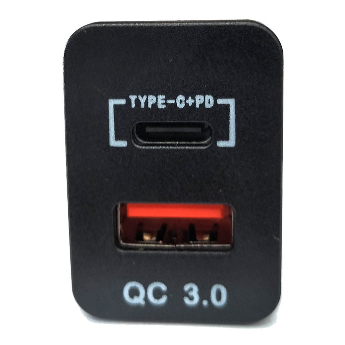 YJ-ST132B-N PD Type C + QC 3.0 USB Charger for Small Toyota Push Button Switch Blue LED - New Model