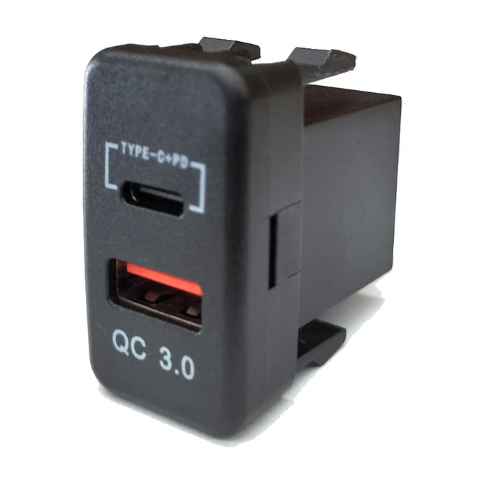 YJ-ST132B-O PD Type C + QC 3.0 USB Charger for Large Toyota Push Button Switch Blue LED - Old Model
